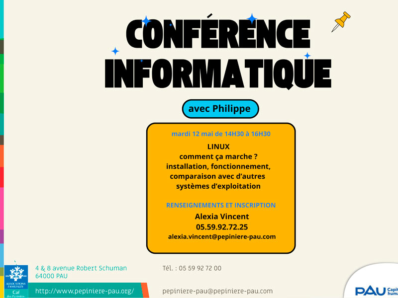 Philippe vous donne rendez-vous le mardi 12 mai de 14h30 à 16h30 pour tout vous expliquer sur Linux
